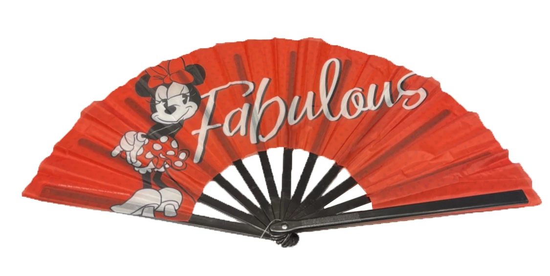 What could be more perfect than a Minnie Mouse Folding Fan? Open it to show Minnie Mouse with the words “Fabulous”.