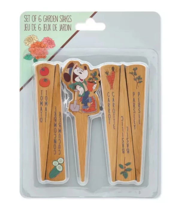 Mickey is here to help organize your plants with this set of six garden stakes. Each of the bamboo stakes includes a colorful illustration and the name of the herb or vegetable, while Mickey is pictured on the blank stake to which you can add a name.