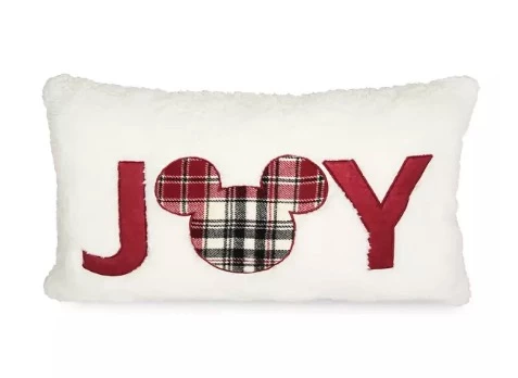 Spread a little ”Joy” around your home with this throw pillow. The double-sided design features an allover plaid print on one side. Turn it over to reveal a cozy faux sheepskin fabric featuring ”Joy”Β made up of appliquΓ© letters and a plaid Mickey icon as the letter ”o”!